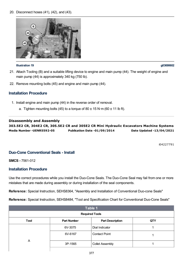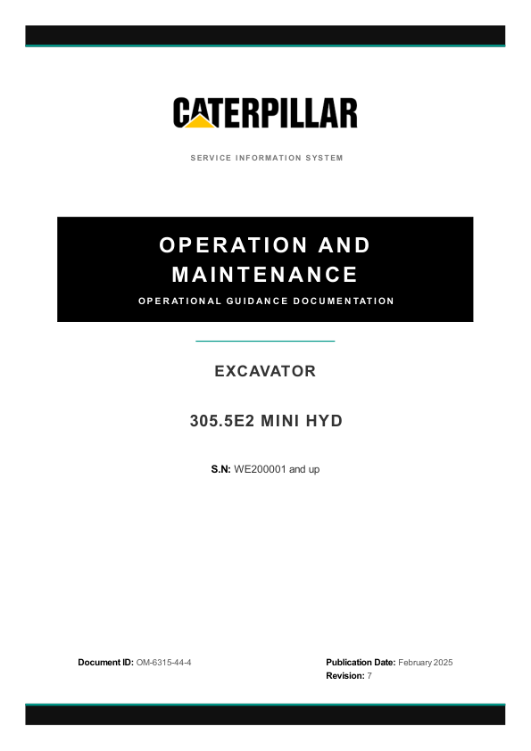 Caterpillar 305.5E2 CR Manual Table of Content: