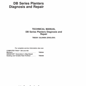 John Deere Bauer DB40, DB44, DB50, DB58, DB60, DB62, DB66, DB74, DB80, DB88, DB90 Planters Repair Manual (SN between 000000 – 745100)