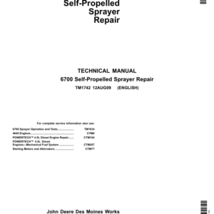John Deere 6700 Self-Propelled Sprayer Service Repair Manual (TM1742 & TM1834)