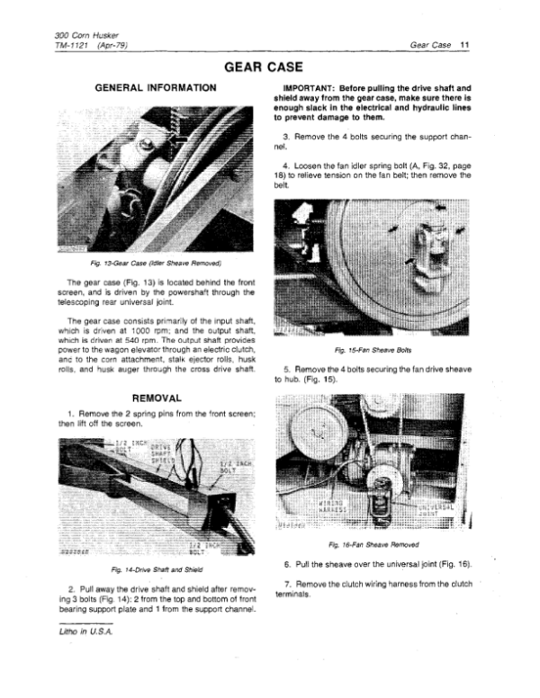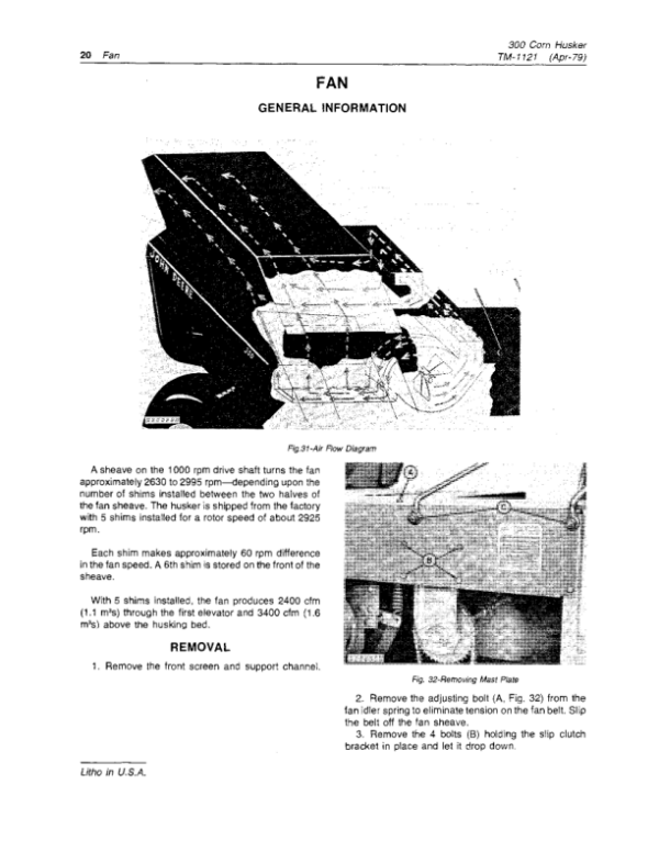 John Deere 300 Corn Husker Repair Technical Manual (TM1121)