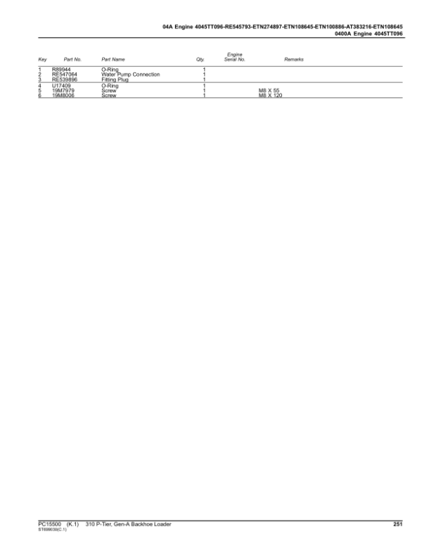 The Catalog ID: PC15500 covers part numbers for John Deere 310 P Backhoe Loaders it were meticulously reviewed and accurate as of the date of publication. To ensure you receive the exact components suited to your machinery, we highly recommend verifying each part number with your local John Deere dealer before placing your order. This extra step guarantees that you get the correct part for your specific model, preventing downtime and maximizing performance.