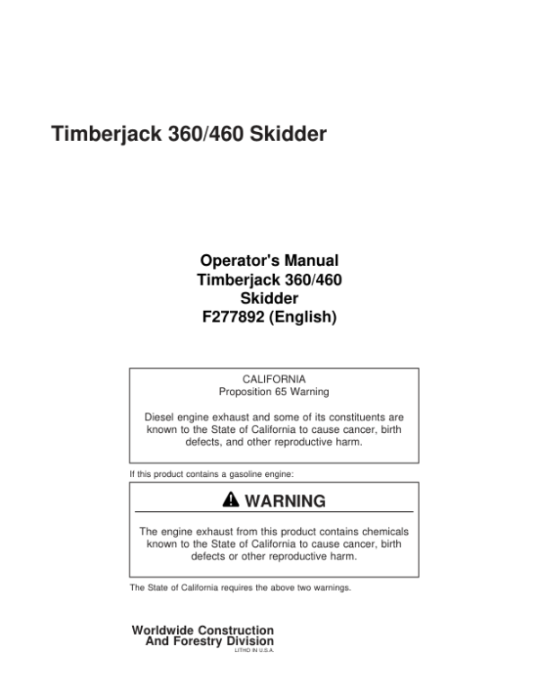 John Deere 360, 460 Skidders Operator’s Manuals (F277892)