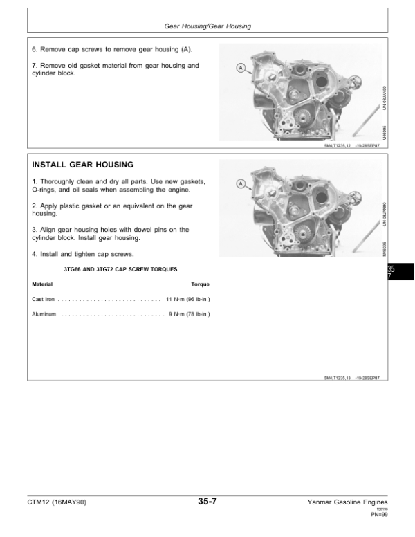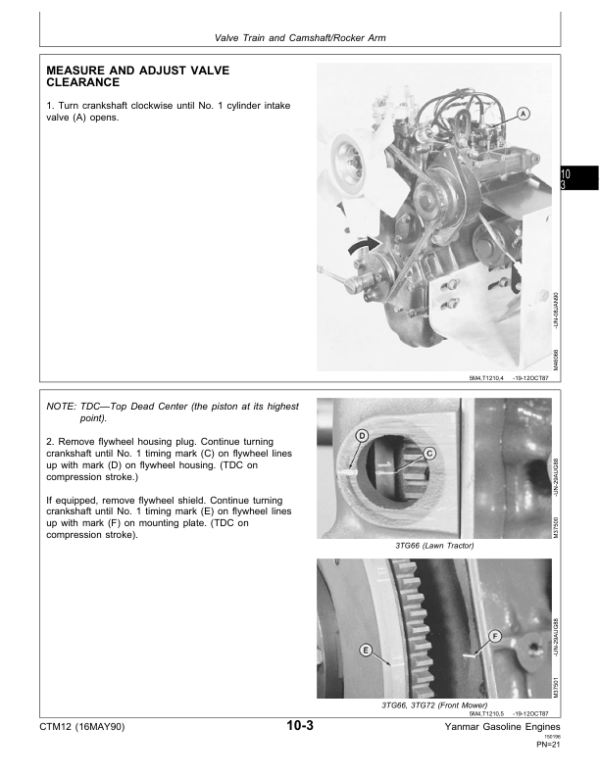 John Deere 3TG66, 3TG72 Yanmar Gasoline Engine Component Technical Manual (CTM12)