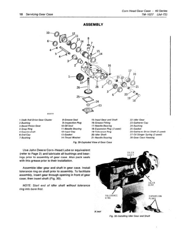 John Deere 40 Series Corn Head Gear Case Repair Technical Manual (TM1027)