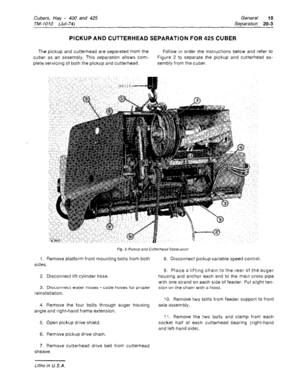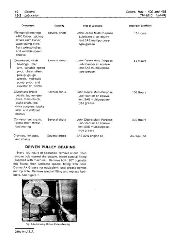 John Deere 400, 425 Hay Cubers Repair Technical Manual (TM1010)