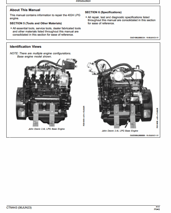 John Deere 4024 (2.4L) LPG Engine Component Technical Manual (CTM443)