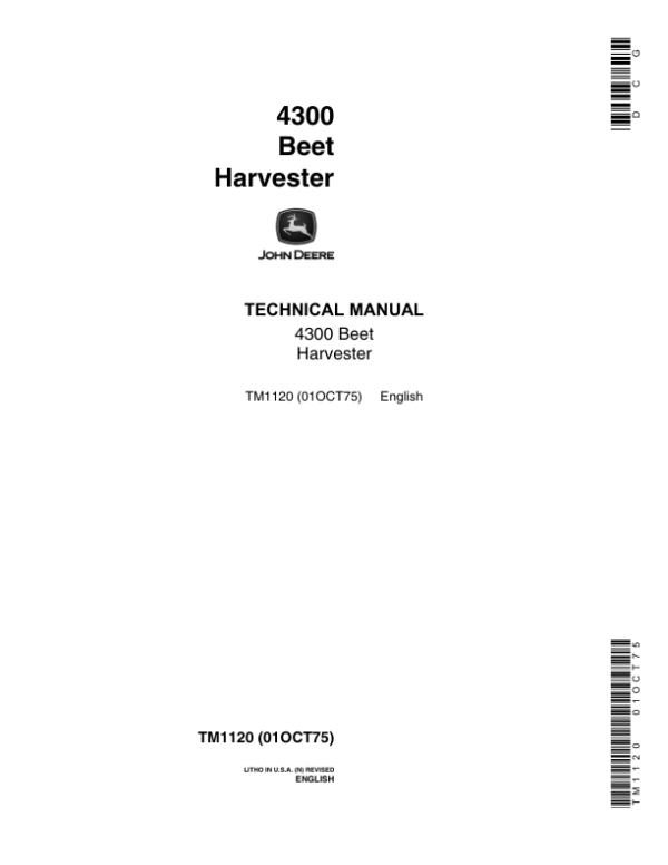 John Deere 4300 Beet Harvester Repair Technical Manual (TM1120)