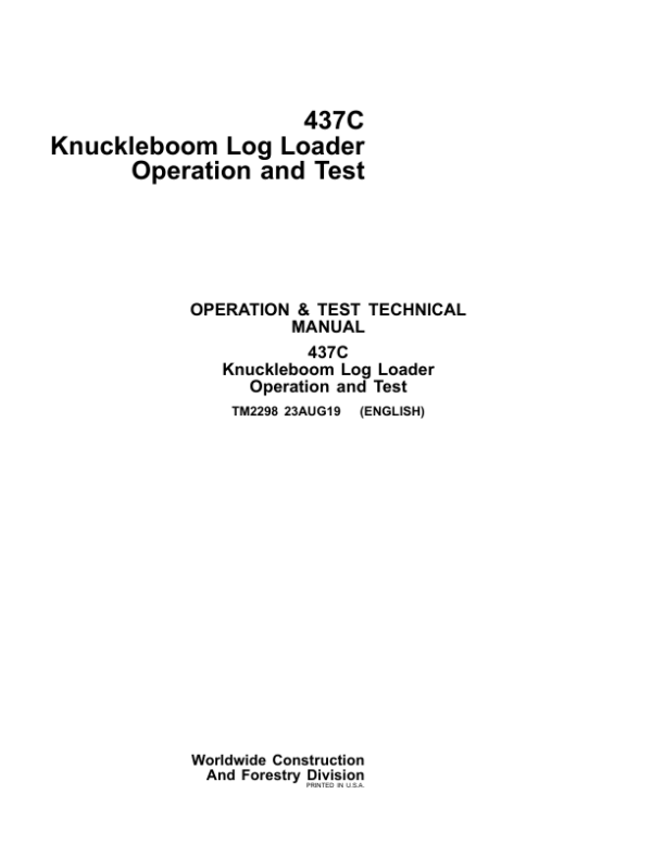 John Deere 437C Knuckleboom Loader Service Repair Manual (TM2298 & TM2299)