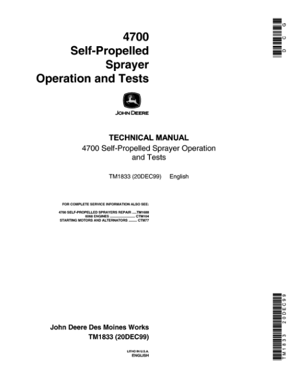 John Deere 4700 Self-Propelled Sprayer Service Repair Manual (TM1688 & TM1833)