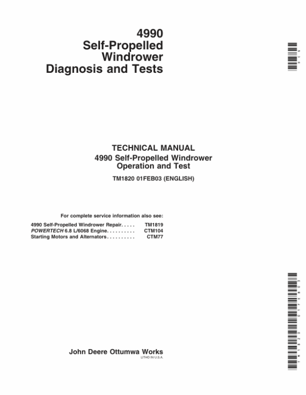 John Deere 4990 Self-Propelled Windrower Service Repair Manual (TM1819 & TM1820)