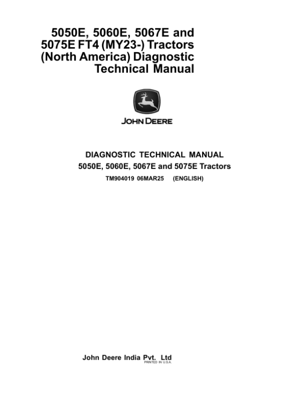 John Deere 5050E, 5060E, 5067E, 5075E FT4 (MY23-) Tractors (North America) Repair Technical Manual