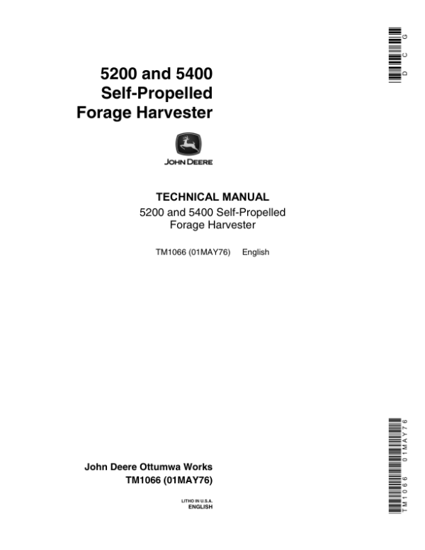 John Deere 5200, 5400 Self-Propelled Forage Harvester Repair Technical Manual (TM1066)