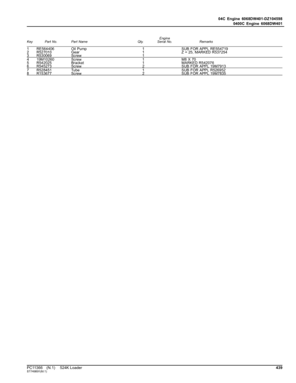 John Deere 524K Loaders (SN F670308-677548) Parts Catalog Manual – PC11366