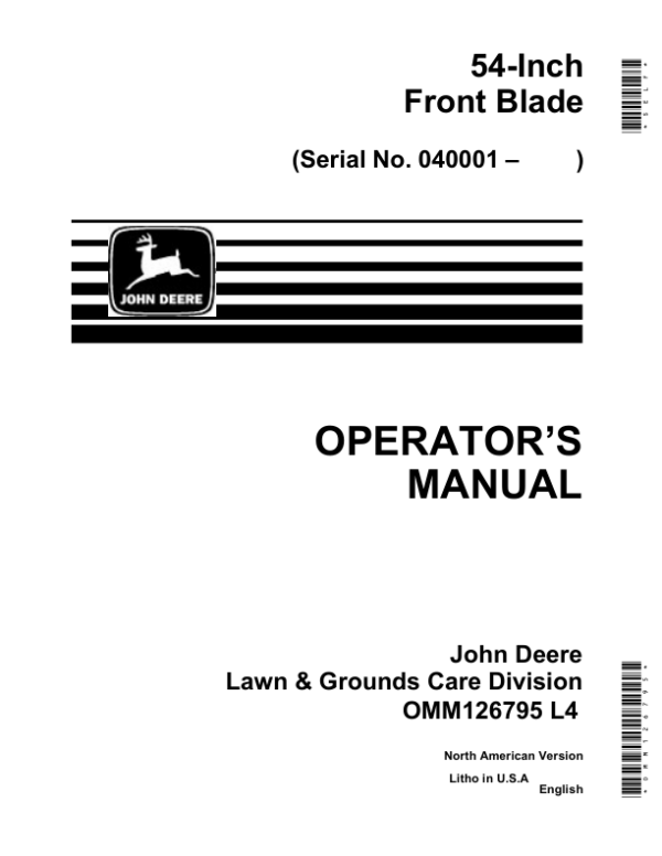 Be the first to review “John Deere 54 Inch Front Blade (040001-) Operator’s Manual (OMM126795)”