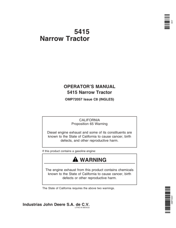 John Deere 5415 Narrow Tractor Operator’s Manual (OMP72057)