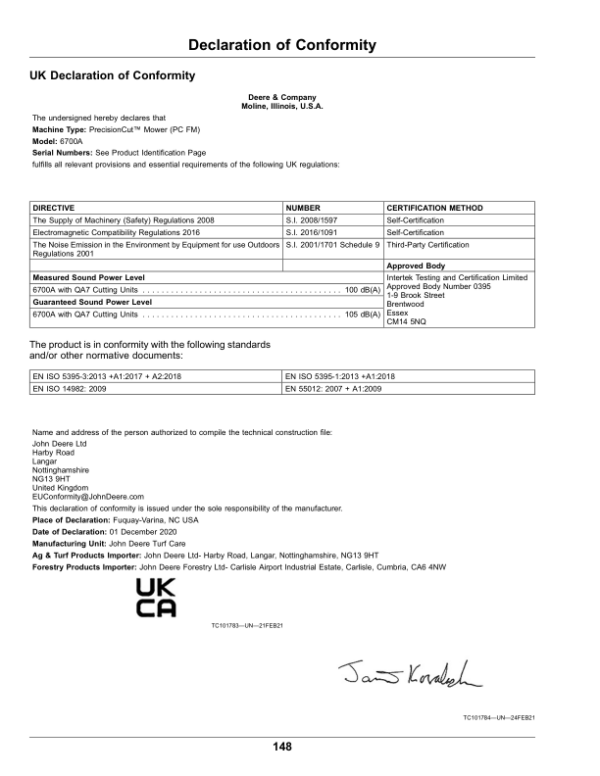 John Deere 6080A, 6500A, 6700A, PrecisionCut (060001-), 6080A, 6500A E-Cut Hybrid (050001-), 6700A E-Cut Hybrid (010001-) (Export Edition) Operator’s Manual (OMUC34577)