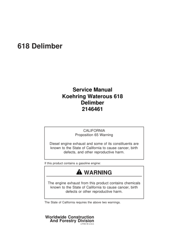John Deere 618 Delimbers Operator’s Manuals (214-1646-1)
