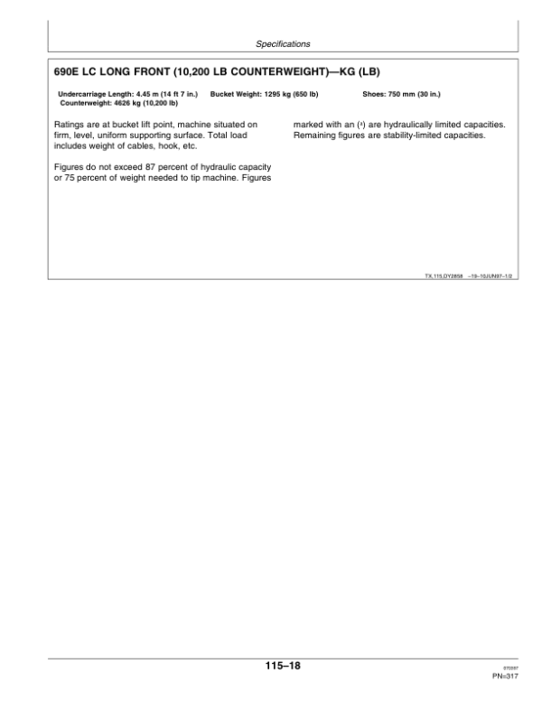 John Deere 690ELC Excavators Operator’s Manuals (OMT162125)