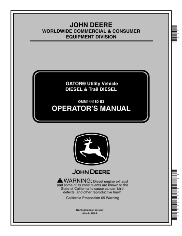 John Deere 6×4 Gator Utility Vehicle North America (008807-068204) Operator’s Manual (OMM144180)