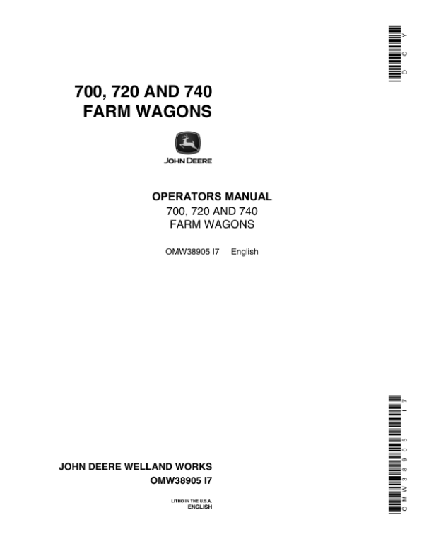 John Deere 700, 720, 740 Farm Wagons Operator’s Manual (OMW38905)