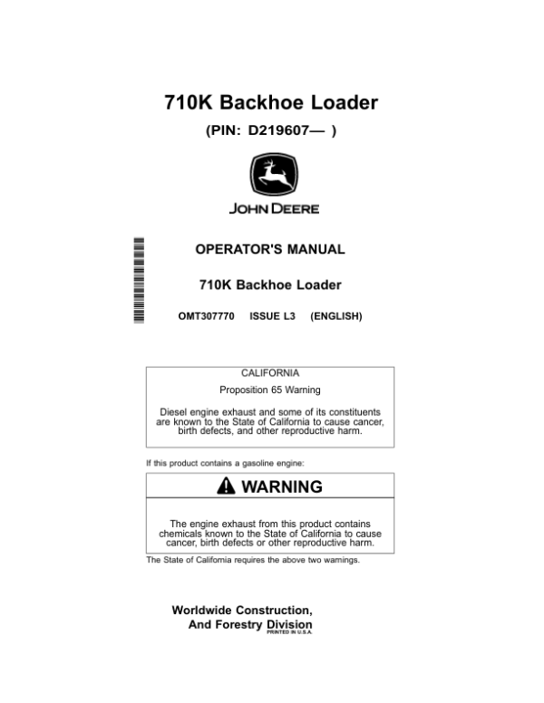 John Deere 710K Backhoe Loaders Operator’s Manuals (OMT307770)
