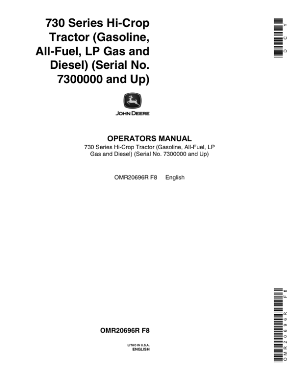 John Deere 730 Utility HI-Crop Tractor Operator’s Manual (OMR20696R)