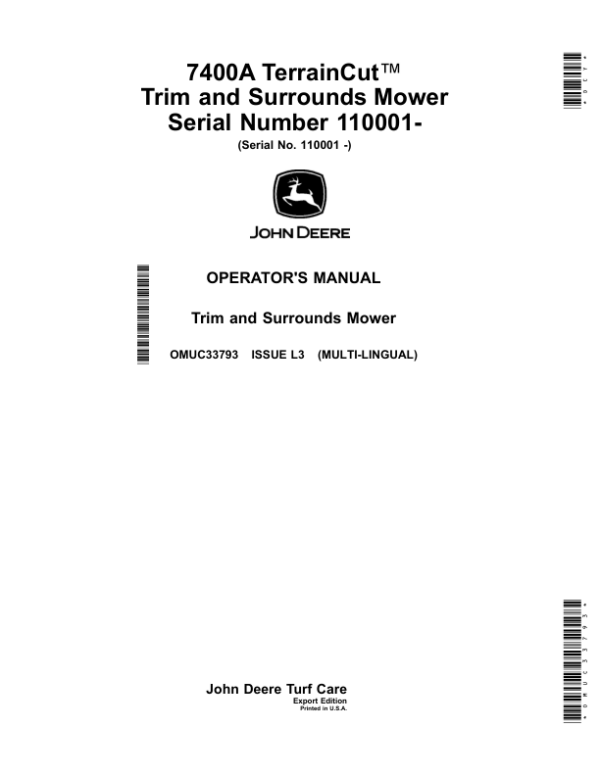 John Deere 7400A TerrainCut Trim, Surrounds Mower (110001-) (Export) Operator’s Manual (OMUC33793)
