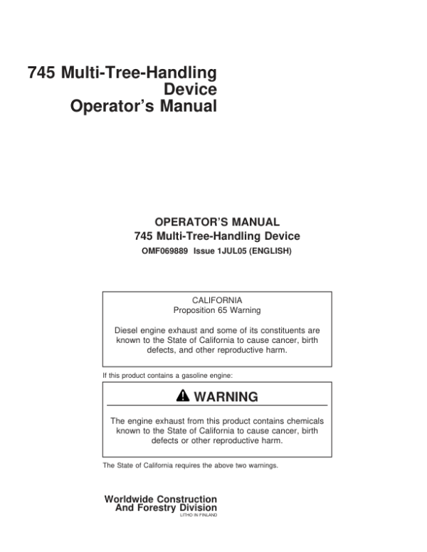 John Deere 745 Harvesting Heads Operator’s Manuals (F069889)