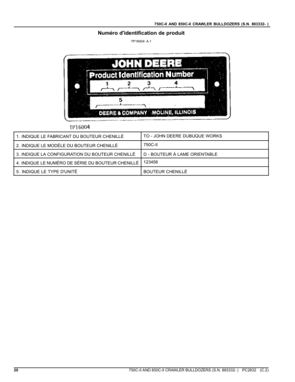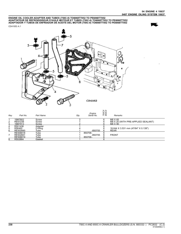 John Deere 750CII, 850CII Crawler Dozers (SNS.N. 883332- ) Parts Catalog Manual – PC2832