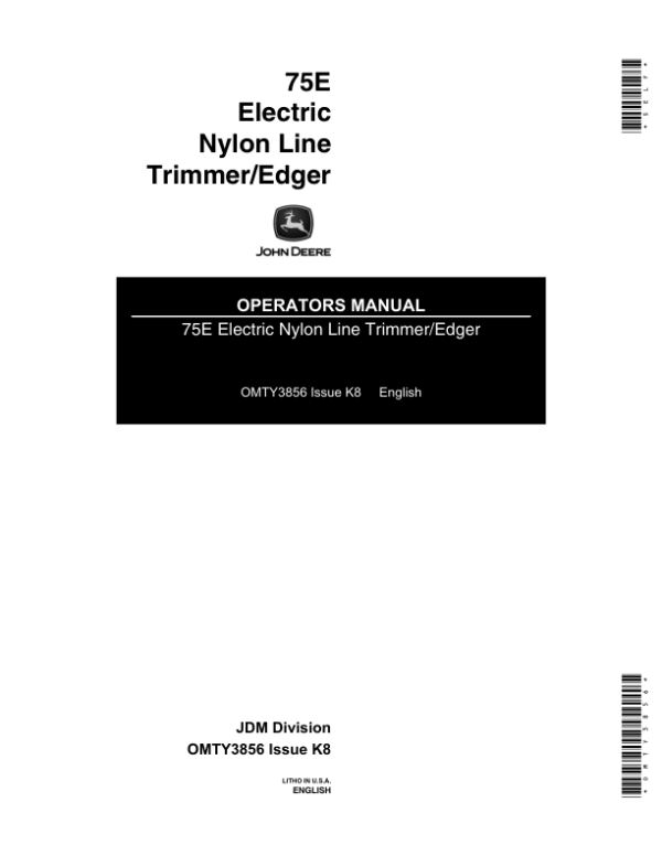 Be the first to review “John Deere 75E Electric Weed Trimmer (Subs with OMM122063) Operator’s Manual (OMTY3856)”