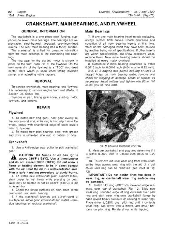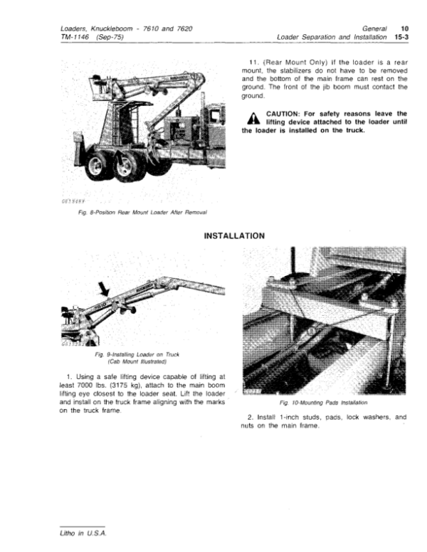 John Deere 7610, 7620 Knuckleboom Loader Repair Technical Manual (TM1146)