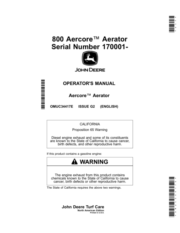 Be the first to review “John Deere 800 Aercore Aerator (170001-) (North American) Operator’s Manual (OMUC34417e)”