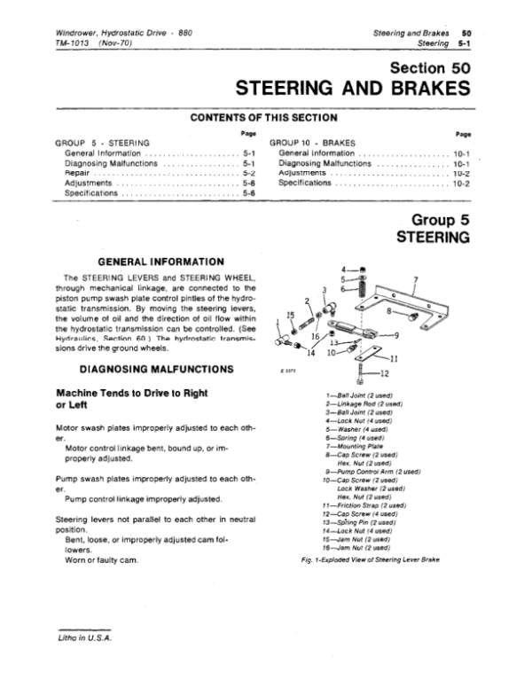 John Deere 880 Hydrostatic Drive Windrower Repair Technical Manual (TM1013)