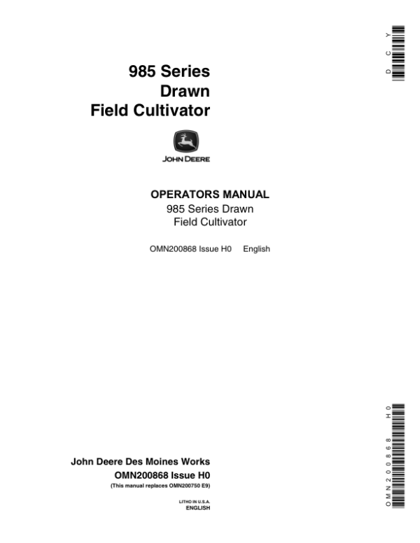 John Deere 985 Series Drawn Field Cultivator Operator’s Manual (OMN200868)