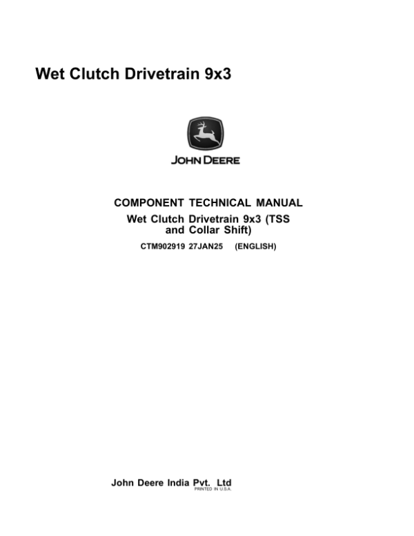 Be the first to review “John Deere 9×3 Wet Clutch Drivetrain Component Technical Manual (CTM902919)”