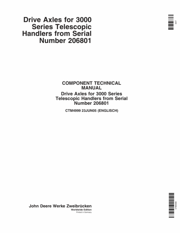 John Deere Drive Axles for 3000 Series Telescopic Handlers Component Technical Manual (CTM4655 or CTM4999)