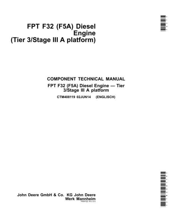 Be the first to review “John Deere FPT F32 (SN F5AE9484BA008) Diesel Engines Component Technical Manual (CTM408119)”