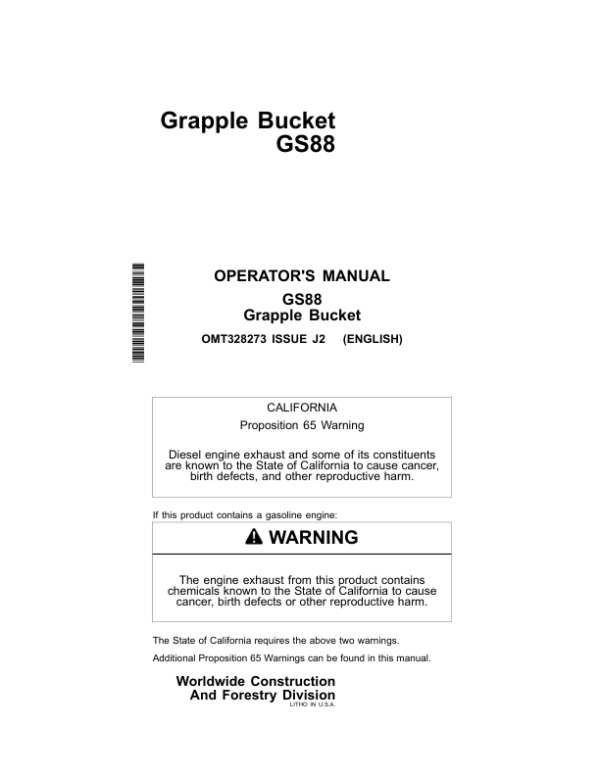 John Deere GS88 Worksite Pro Attachments Operator’s Manuals (OMT328273)