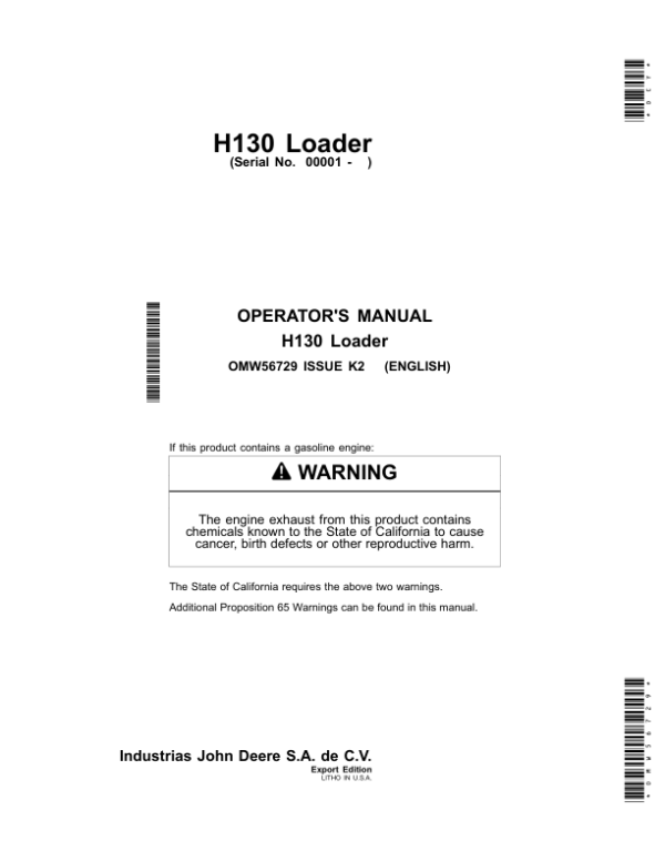 John Deere H130 Loader Operator’s Manual (OMW56729)