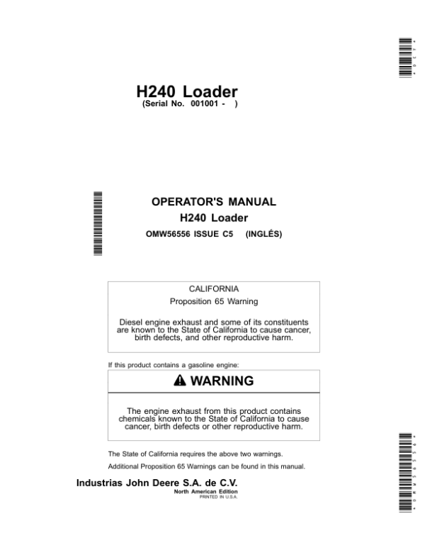John Deere H240 Loader Operator’s Manual (OMW56556)
