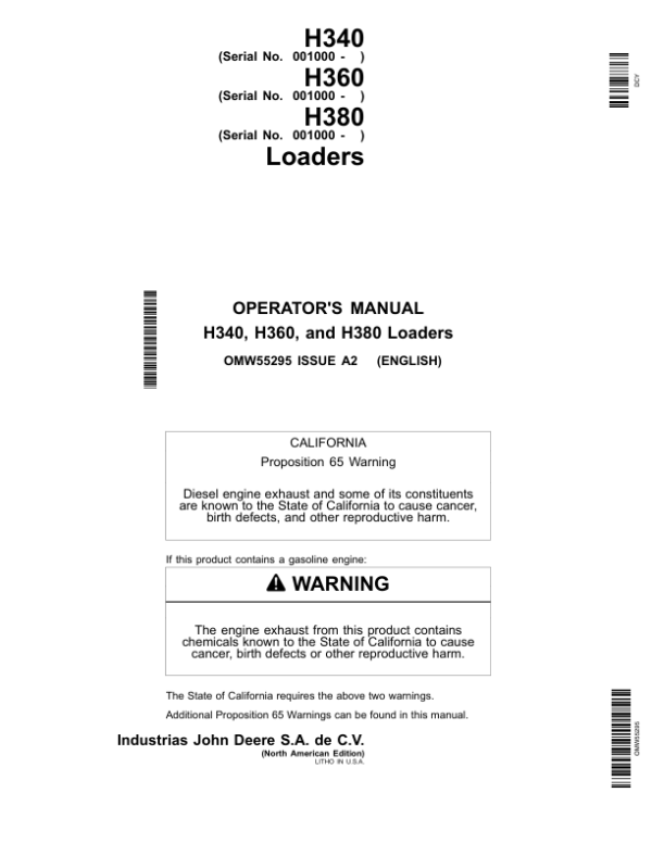 John Deere H340, H360 & H380 Loaders North America (010001- ) Operator’s Manual (OMW55295)