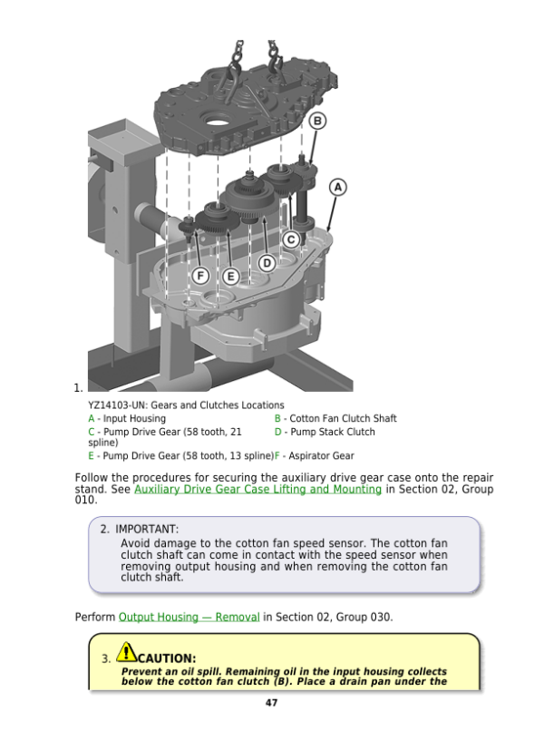 John Deere Main Engine Gear Case P1K and S1K Cotton Component Technical Manual (CTM159019)