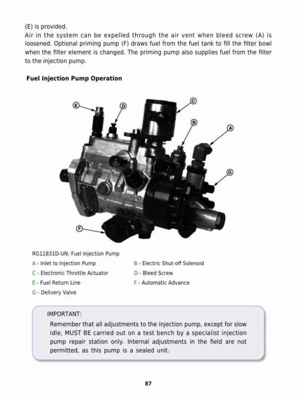 John Deere Powertech 4.5 L & 6.8 Level 1 Electronic Fuel Systems With Delphi (Lucas), DP201 Pump Component Technical Manual (CTM284)