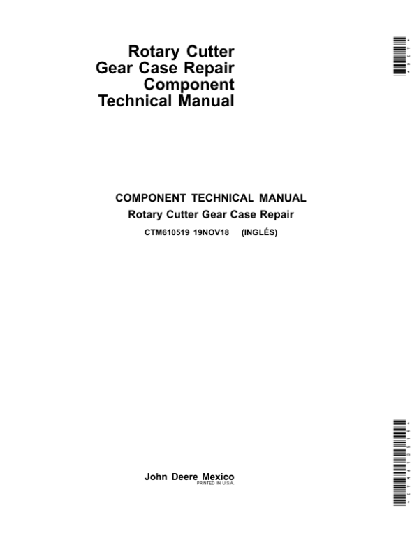 Be the first to review “John Deere Rotary Cutter Gear Case Repair Component Technical Manual (CTM610519)”