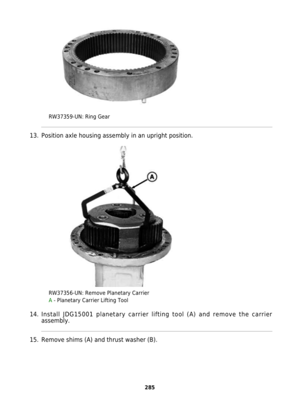 John Deere TeamMate V 1400 & 1600 Series (SN 2516P & 2526P) Inboard Planetary Axles Component Technical Manual (CTM129119)