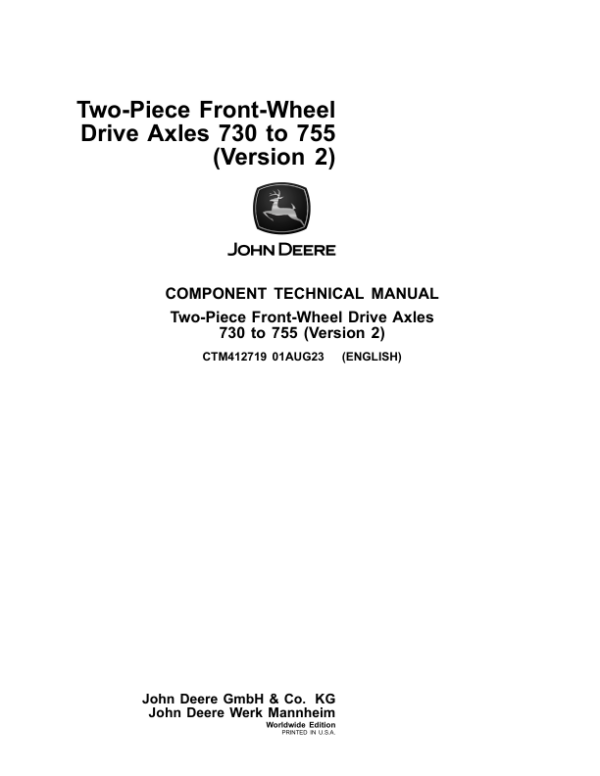 Be the first to review “John Deere Two-Piece Front-Wheel Drive Axles 730 to 755 (Version 2), 6R, 6M, and 6RCMC Component Technical Manual (CTM412719)”
