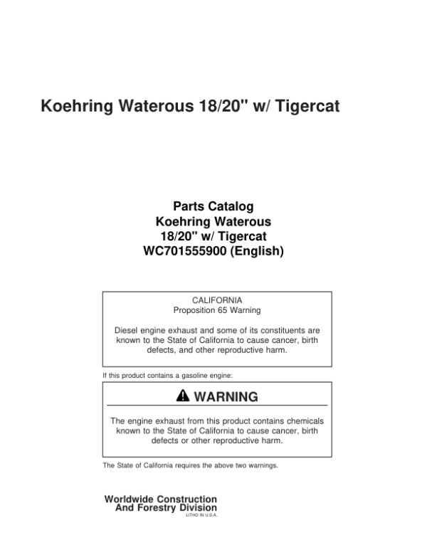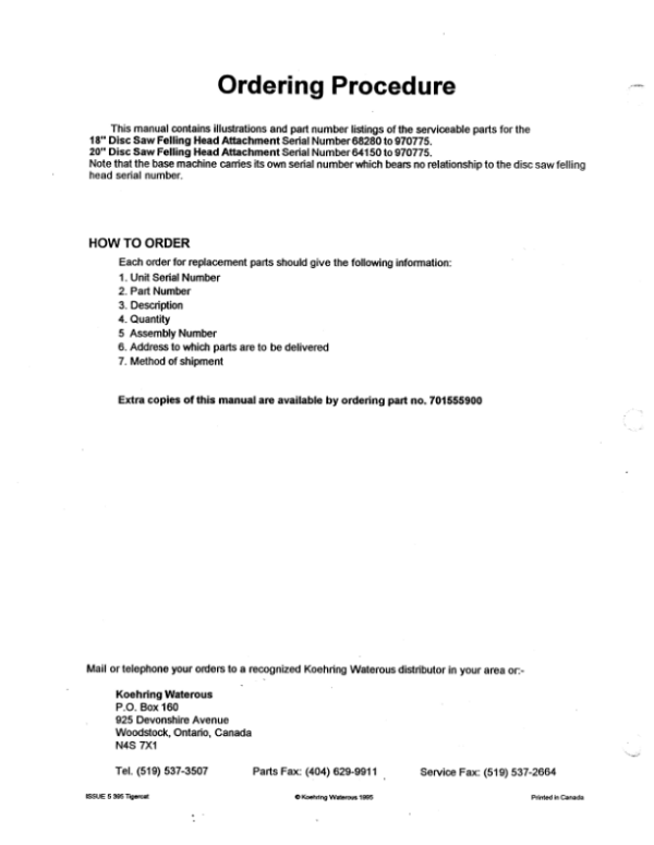 The Catalog ID: WC701555900 covers part numbers for Koehring 18 Inch, 20 Inch (Tigercat) Felling Heads it were meticulously reviewed and accurate as of the date of publication. To ensure you receive the exact components suited to your machinery, we highly recommend verifying each part number with your local John Deere dealer before placing your order. This extra step guarantees that you get the correct part for your specific model, preventing downtime and maximizing performance.
