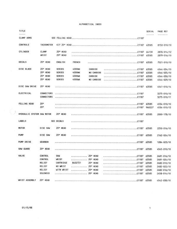 Koehring 20 Inch (Case 1187) Felling Heads (SN 64150-970775) Parts Catalog Manual – WC701556000