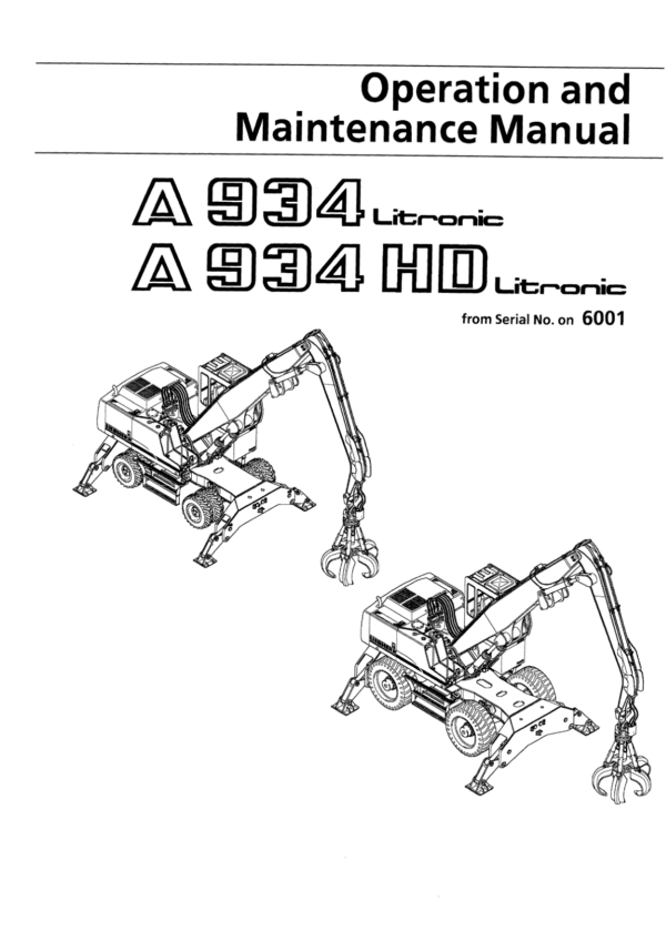 Liebherr A934, A934 HD Litronic Excavator Operators Service Repair Manual