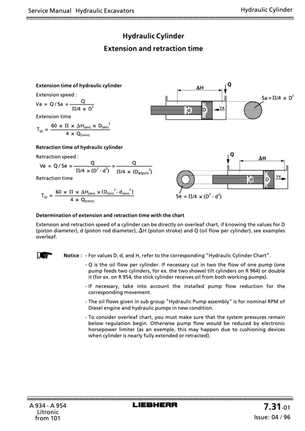 - 7.31. Hydraulic cylinder / Extension and retraction times A 934 Litronic / from 6001 A 944 HD Litronic / from 5001 A 954 HD Litronic / from 101